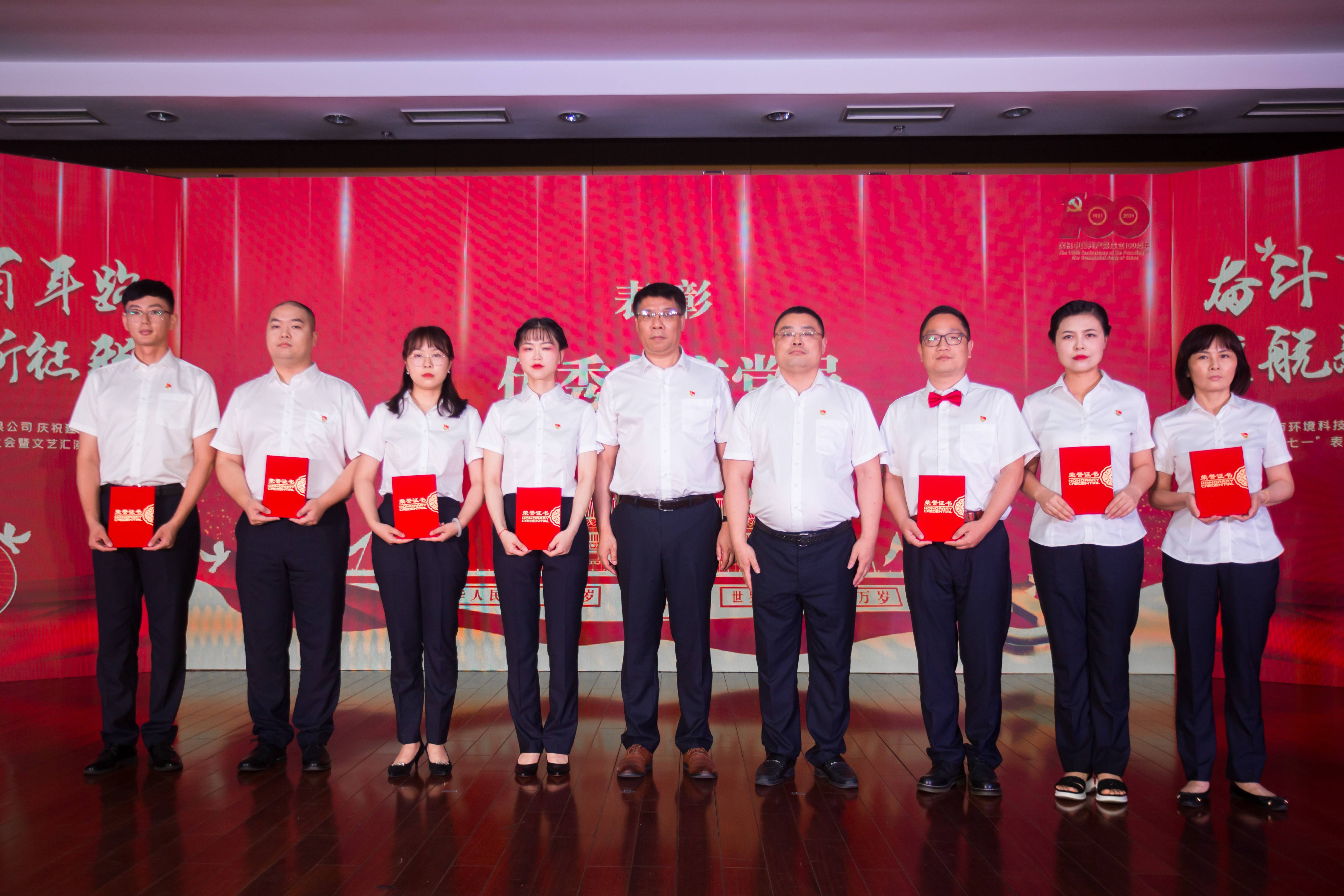 在熱(rè)烈慶祝黨的百年(nián)華誕之際,公司隆重表彰在各條戰線、各項工(gōng)作(zuò)中湧現出的優秀共産黨員(yuán)、優秀黨務工(gōng)作(zuò)者和先進基層黨組織,激勵動員(yuán)各個基層黨組織和全體(tǐ)幹部職工(gōng)不忘初心,牢記使命,在推動公司“十四五”發展中勇挑重擔、争當先鋒。受到表彰的先進集體(tǐ)代表和優秀個人(rén)先後上台領獎,會場氣氛莊重熱(rè)烈。