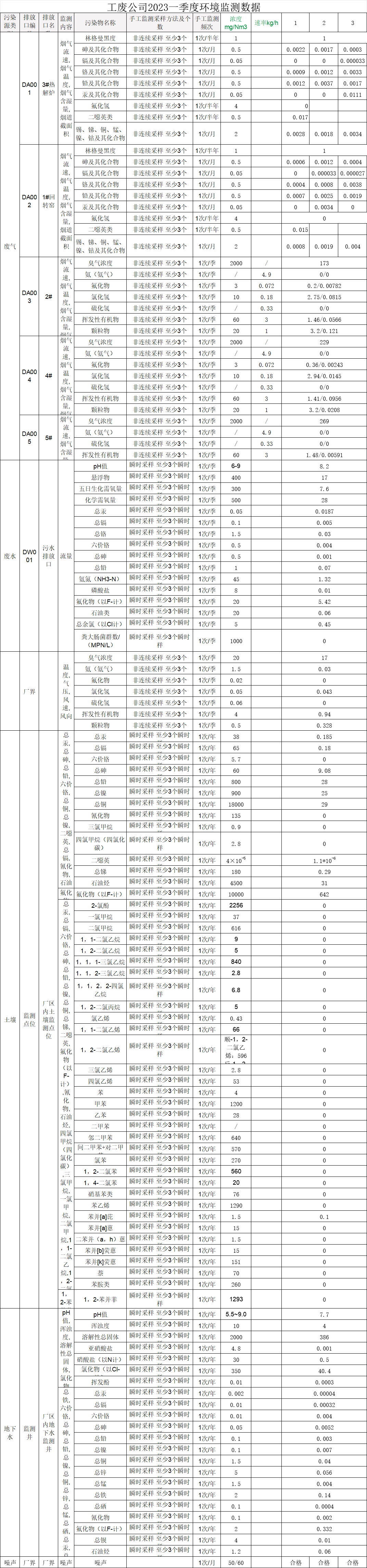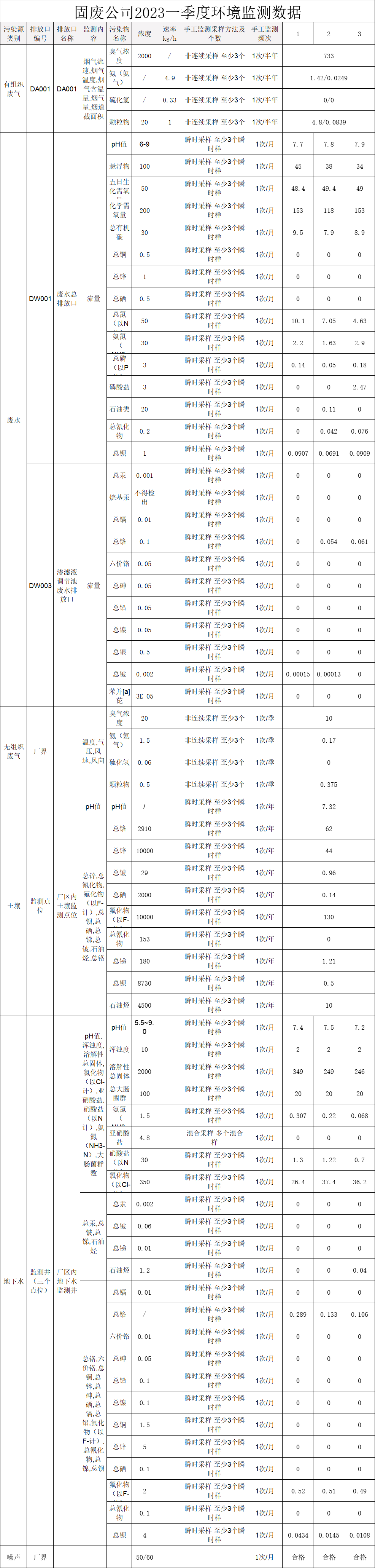 一季度工(gōng)廢(固廢)公司危險廢物産生(shēng)、處置情況及環境監測數據彙總